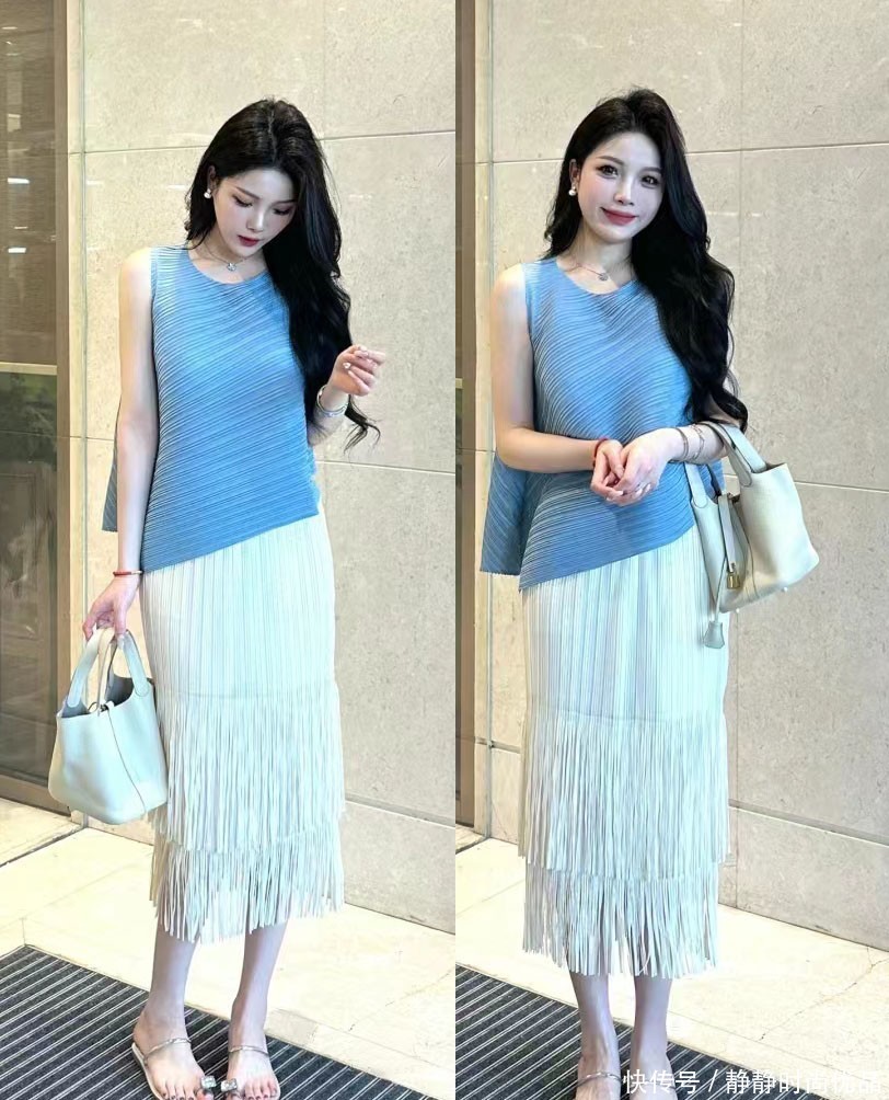 在搭配上装时,就可以将下摆扎进裙腰中,因此夏装面料齐相比冒昧,涓滴不会在腰部带来任何的肥胖量感。