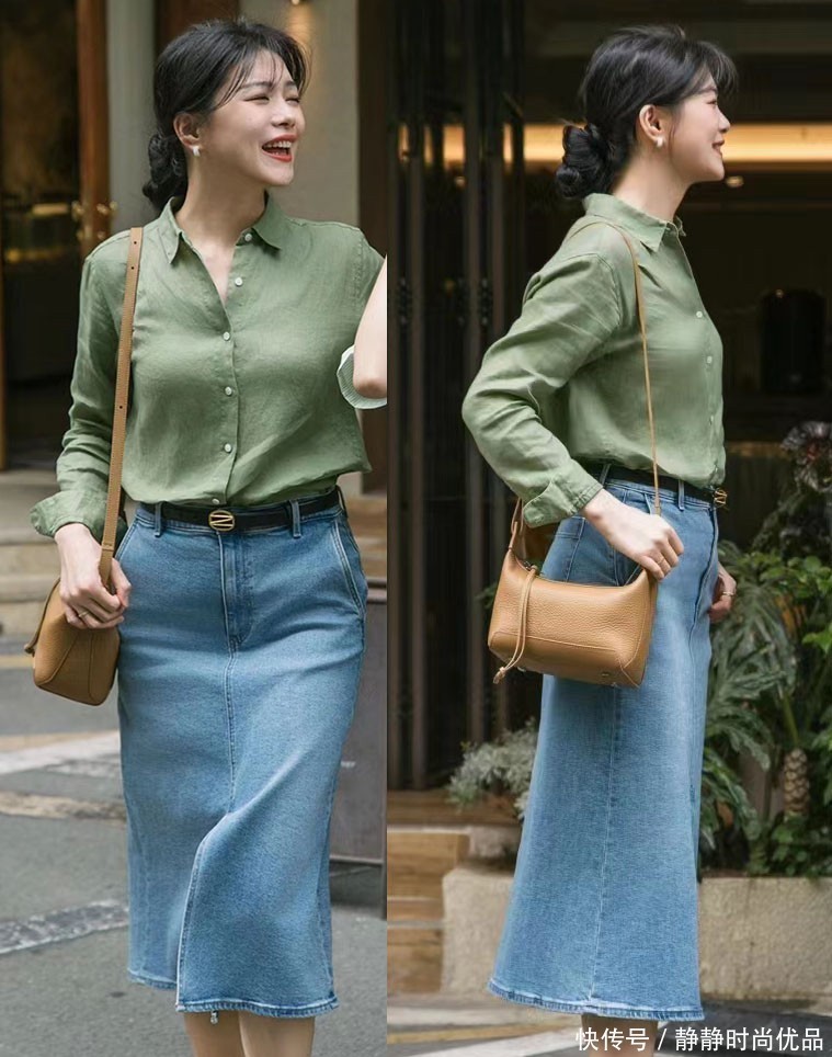 与牛仔半身裙搭配的话,这两种色彩也能展现出相比顺应的交融感,使造型气魄同期成绩到帅气与优雅的作风。